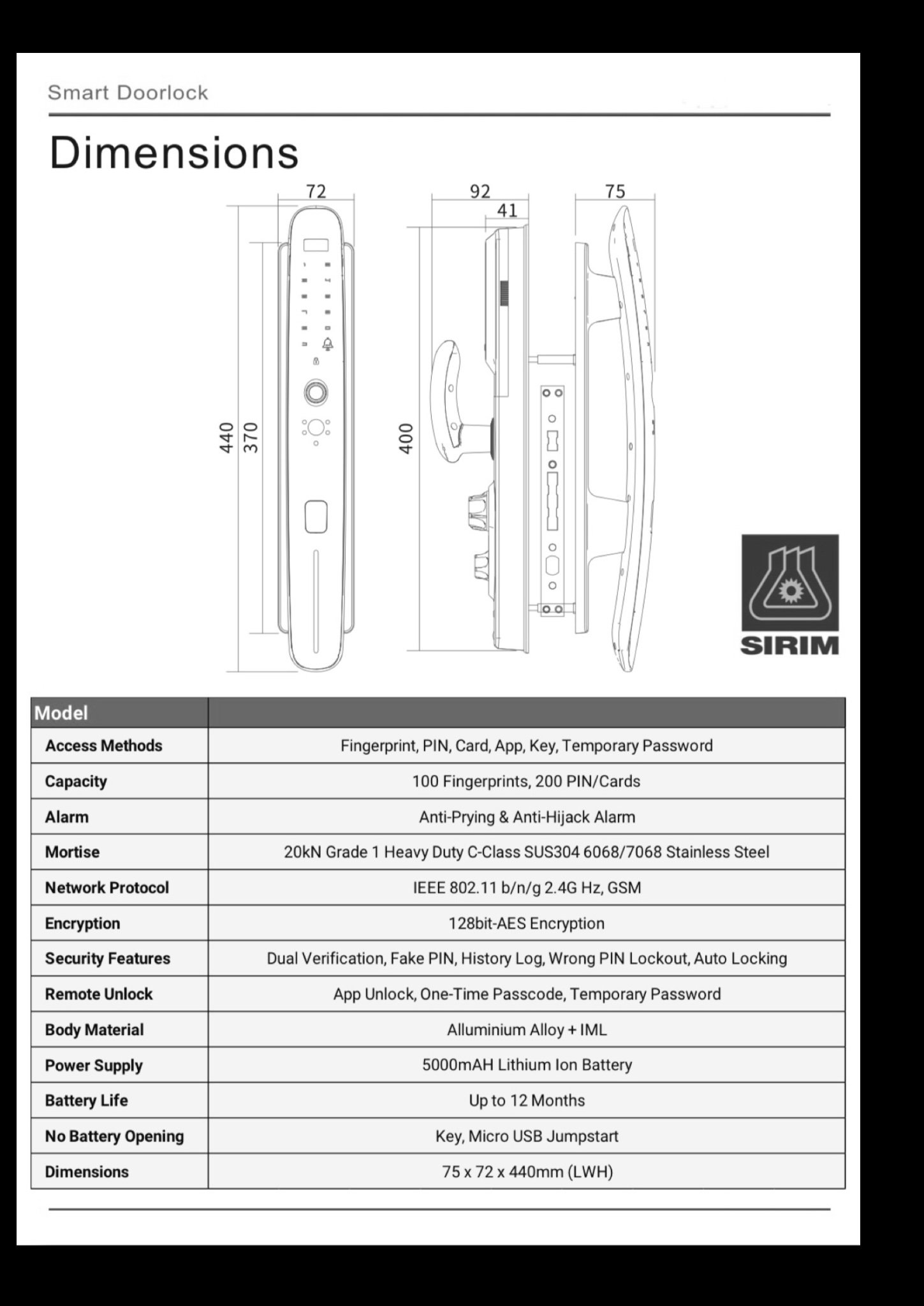 • Nano Coating Terminal – Reduces the risk of residual fingerprint on the smartlock